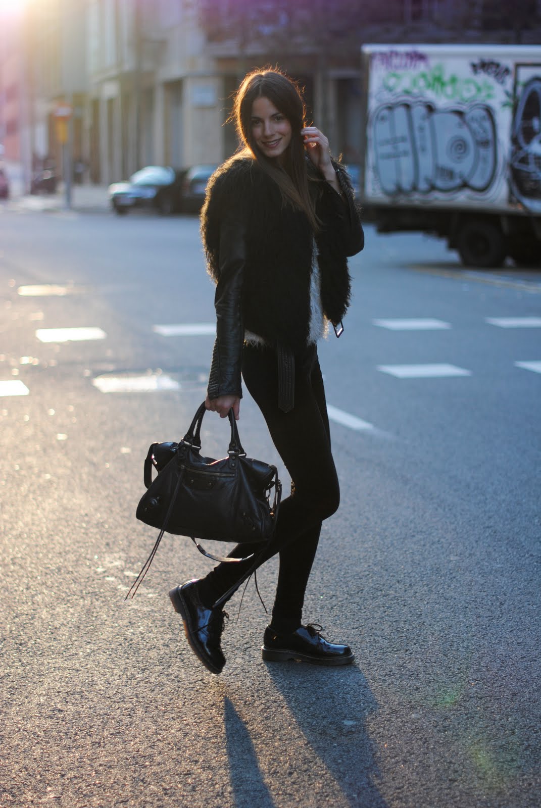 Dziś dość banalny strój. Skórzana kurtka i futrzana kamizelka są po prostu oklepane. Ale podoba mi się w tym połączeniu to, że w każdym stylu wyglądają inaczej. Ja postawiłam na klasyczną czerń. Trochę 'szaleństwa' w całym outficie daje futrzana kamizeka. Właściwie futrem nazwać tego nie można, bo w rzeczywistości przypomina mi mój dywanik w łazience. Jak dla mnie jest bardzo awangardowa. Do tego jak widać na zdjęciach jeden z moich ulubiony plecaków.